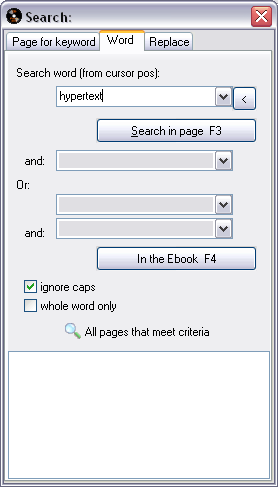 The search window permits searches on the whole presentation/hypertext (also boolean searches!).