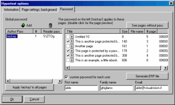 La gestion des mots de passe se fait très facilement grâce au volet “Hypertexte >Mot de passe”.