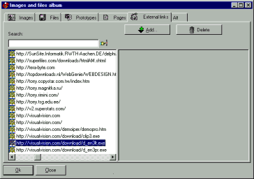 L’album interne : vous pouvez modifier, chercher, remplacer ou supprimer n'importe quel objet présent dans l’hypertexte (images, liens vers une adresse Internet, pages, etc...). Si, par exemple, vous modifiez un lien Internet ici, le changement sera propagé à l'hypertexte entier!