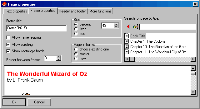 With this tab you can set the properties for the selected frame. CDFrontEnd can manage frames also with the