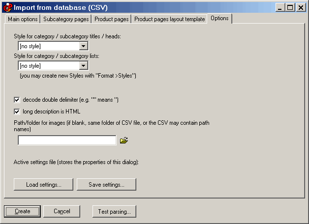 CSV - Database import, “Options” tab