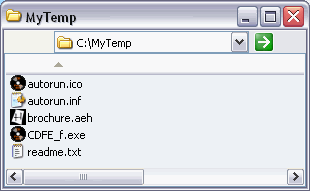 g) Lancez votre logiciel de gravure (EasyCD, Nero, WinOnCD, etc.) et créez votre CD / DVD qui contiendra les fichiers du dossier temporaire et tous les autres fichiers souhaités (comme "mondocument.pdf" dans le dossier "data"). Dans le cas de figure le plus simple, la racine (dossier principal) du CD contiendra ces fichiers :