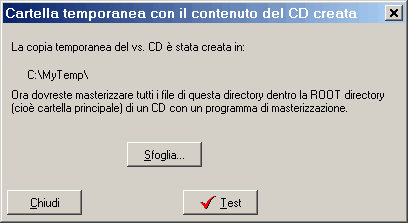 Il programma creerà in una cartella temporanea tutti i file che vanno messi su CD, e visualizza la finestra: